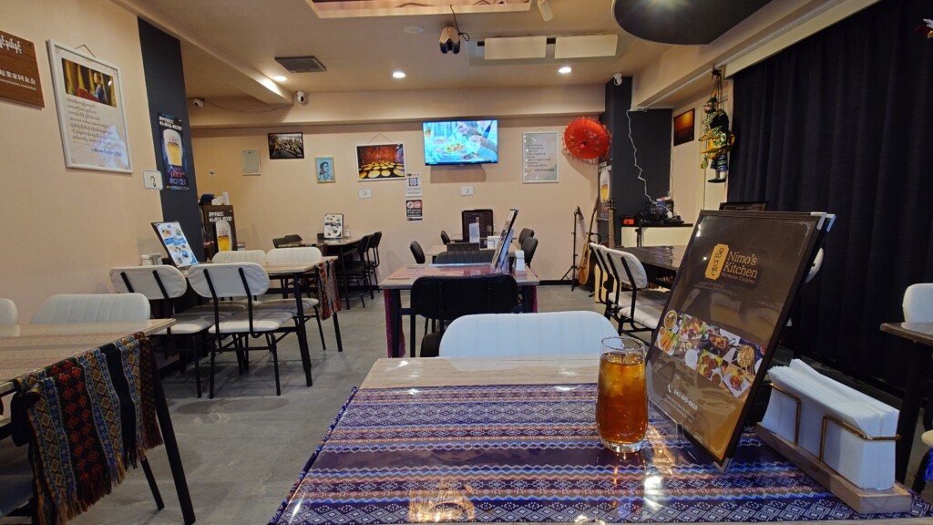 ミャンマーらしい装飾で飾られた店内にお客さんの姿は見当たらずで