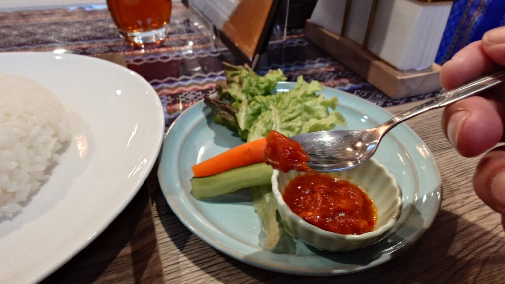 続いてはこちらのカレーをご飯と頂いてみますが、