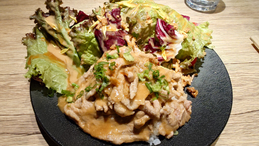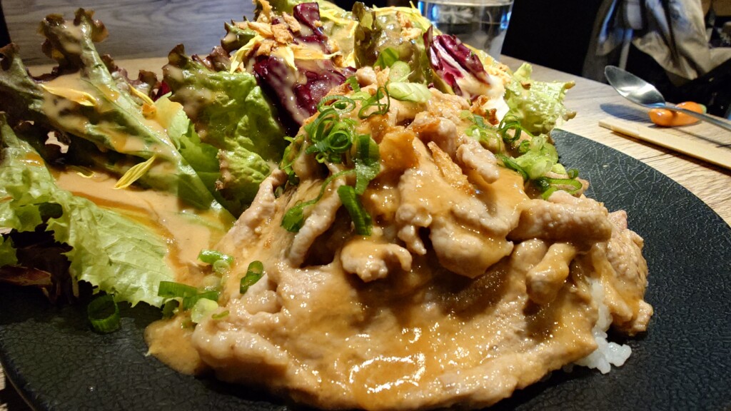 たんまりサラダに絶品自家製ドレッシング 風味豊かな豚も満載な生姜焼き丼