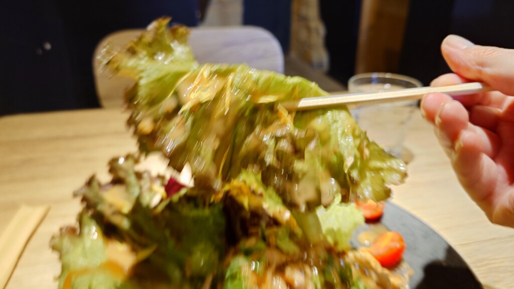 この組み合わせで味わえば、もはや豚生姜焼きそのものがドレッシング状態