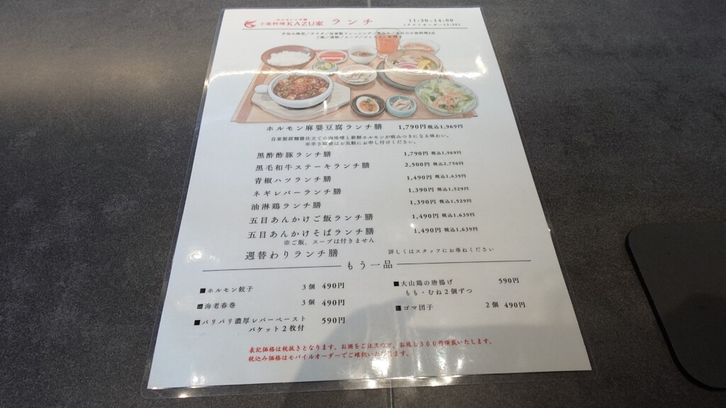 という訳で本日はここ、ホルモン中華KAZU家にて、二度目のランチを頂いてみることに。