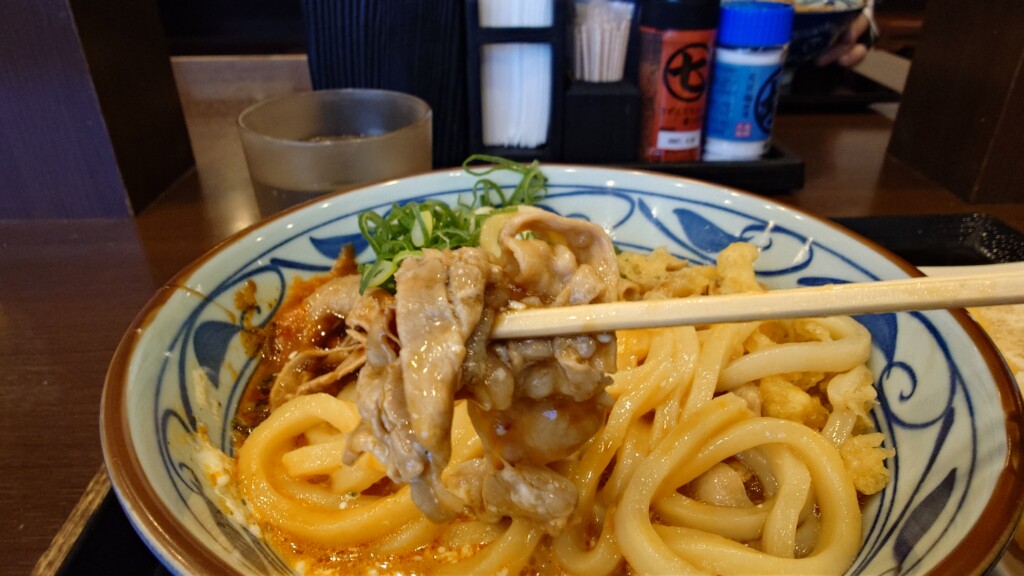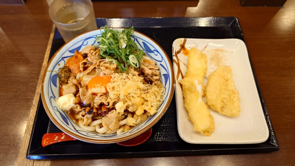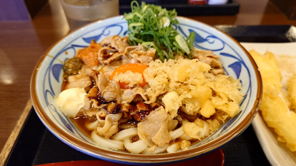 丸亀製麺で2月末提供開始の新メニュー、こく旨豚玉ぶっかけうどんを食べてみた