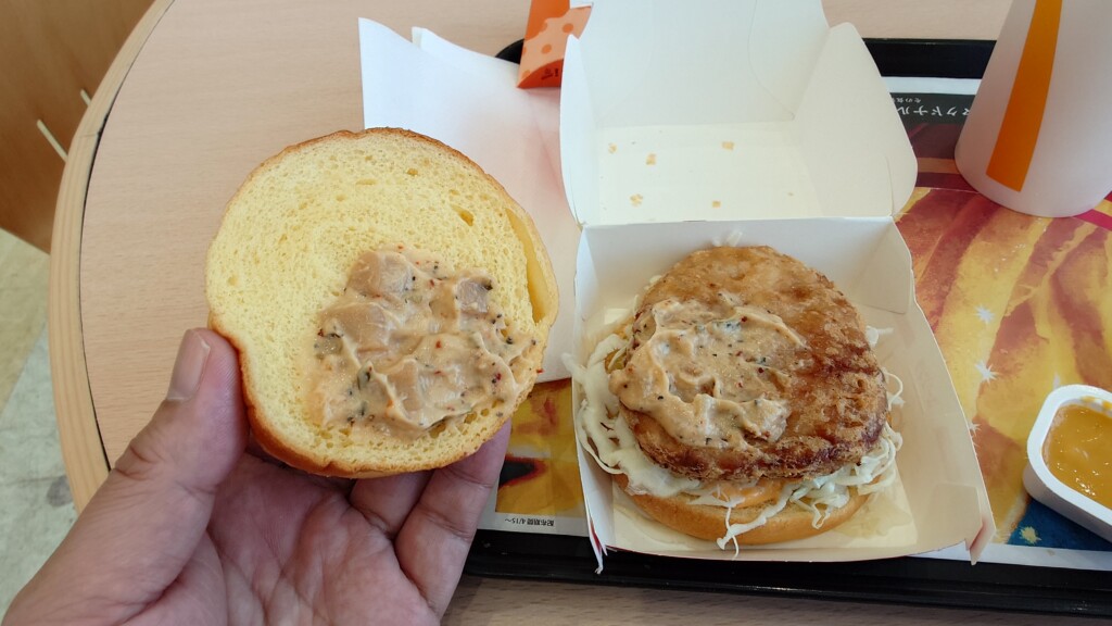 そんなバンズを経て、ふた口目にて辿り着くのがチキンタツタ部分