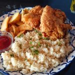 ダイニングバーのようなお洒落空間で頂く、熱ウマなフライドチキンとライスプレート