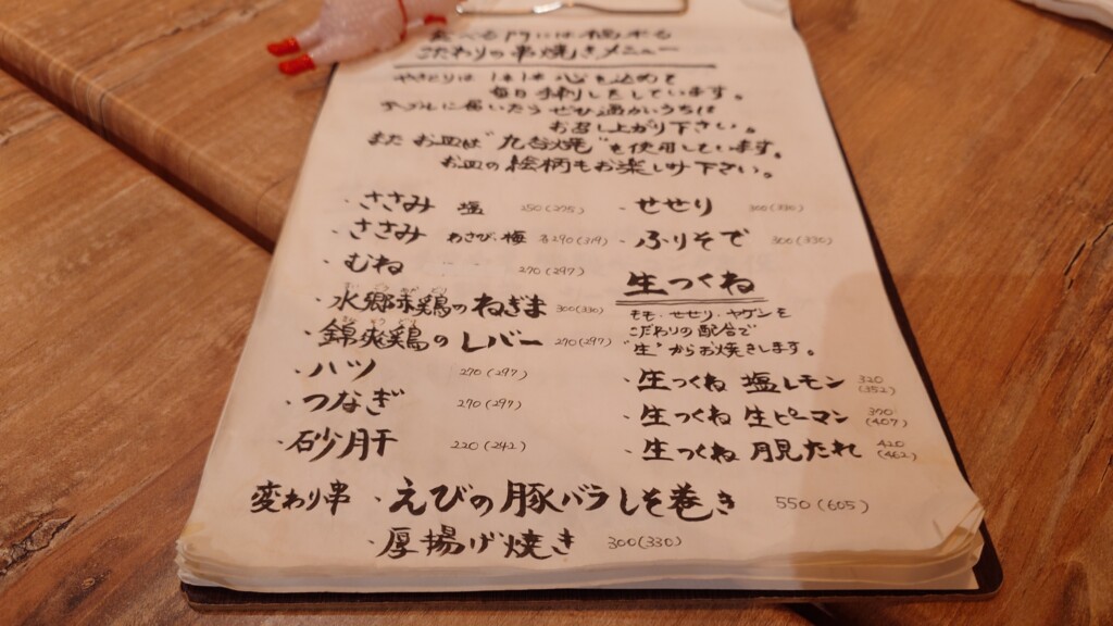 そんな各メニューをチェックしていき、まずは串焼きからオーダーをスタート