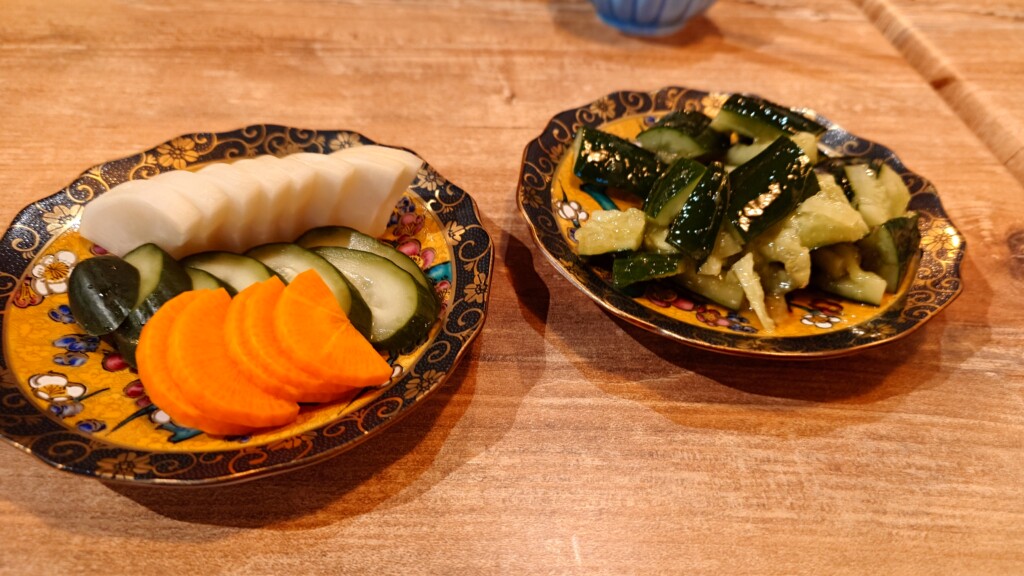 自家製のぬか漬け、そしてたたききゅうりの2品を頂きつつ、久々の絶品串焼きを待つ流れに。