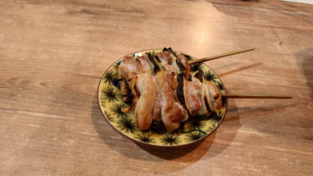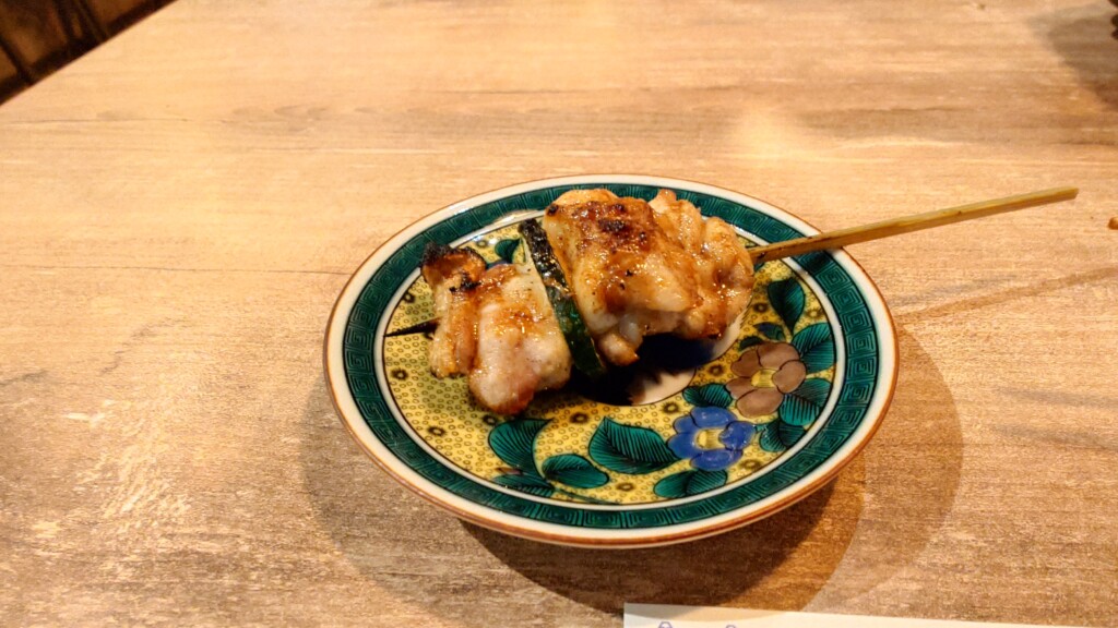 焼き目の香ばしさに加えて、間に挟まるズッキーニがアクセントになるなど、ひと串の中に様々な旨味詰まる同品