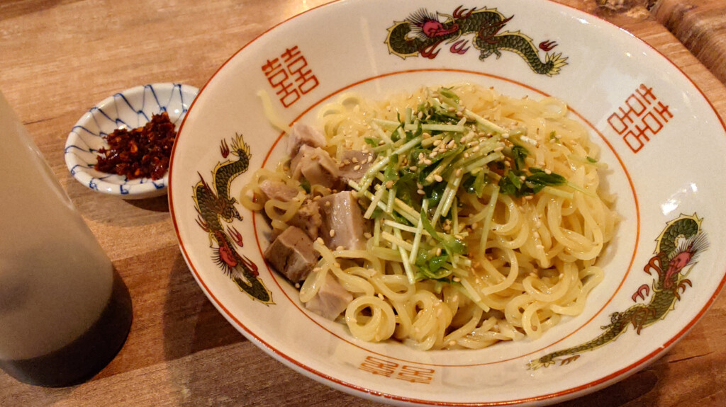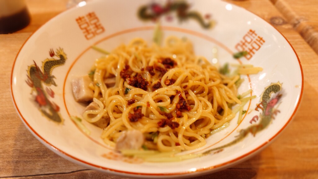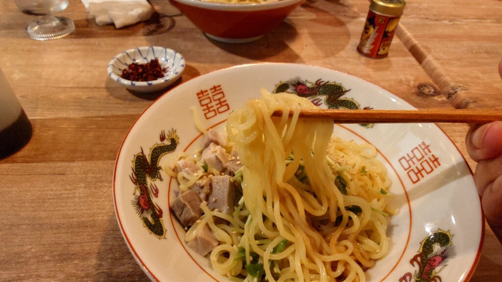 想像の付かなかった同品ですが、提供されるその姿は油そばを彷彿とさせる次第で