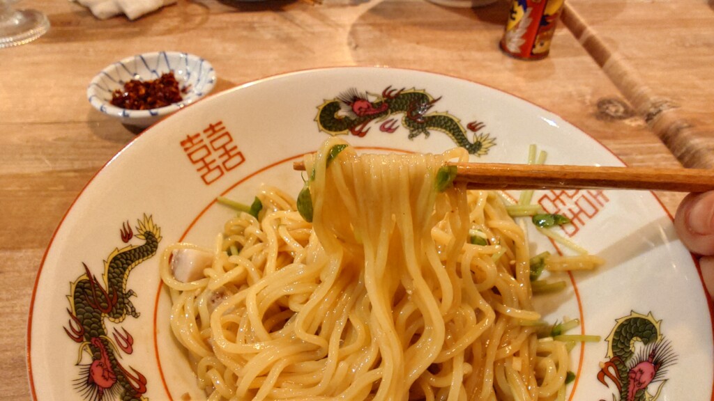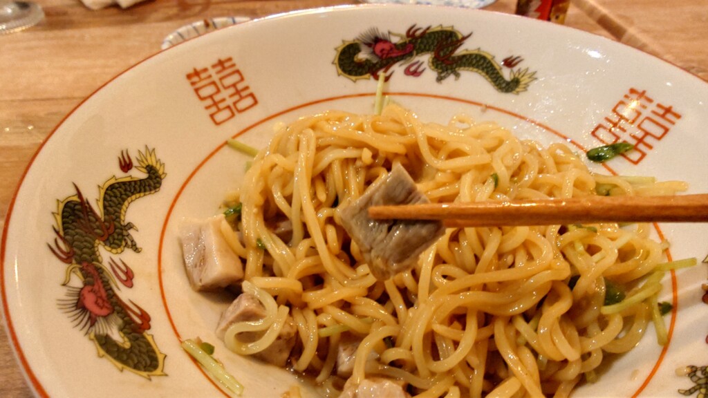 想像以上に油を多めに使用しているのか、とにかくツルッとした食感が面白い品に