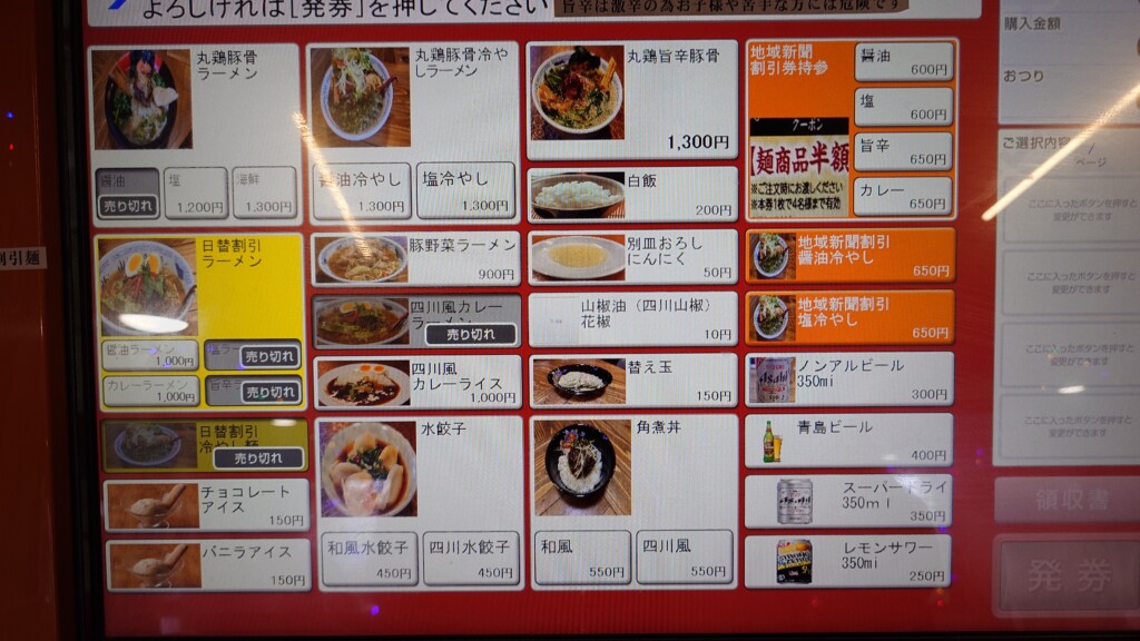 より詳しい情報については、店内の券売機で確認する事ができ、