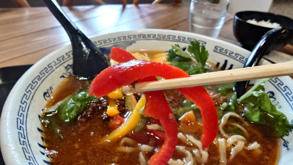 装い新たに野菜各品を添えた、四川風カレーラーメンへ