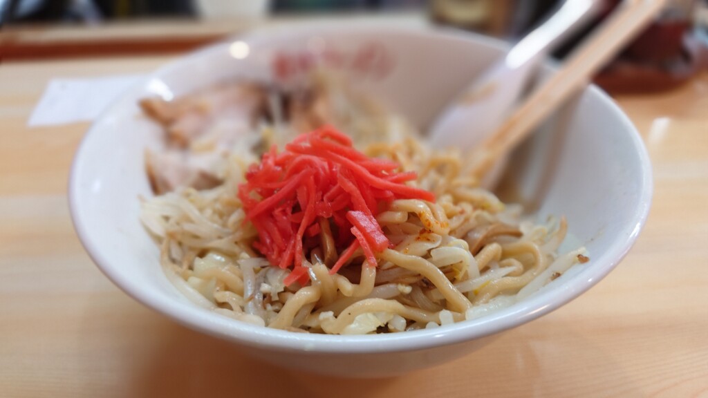 まぜそば以上に、紅生姜による味変が輝きを見せる一杯となります