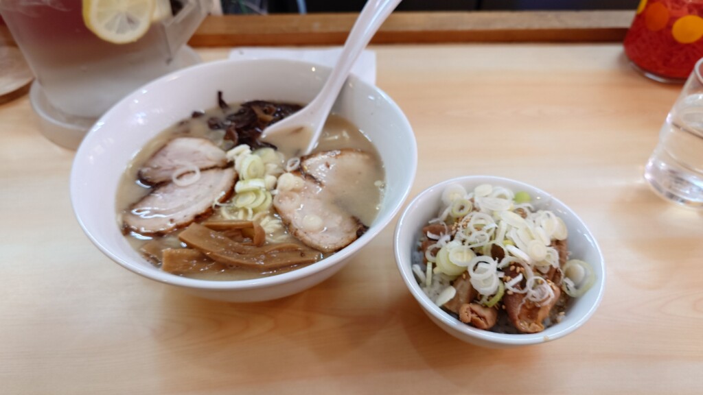 長州ラーメン&ミニもつ丼セットとなります