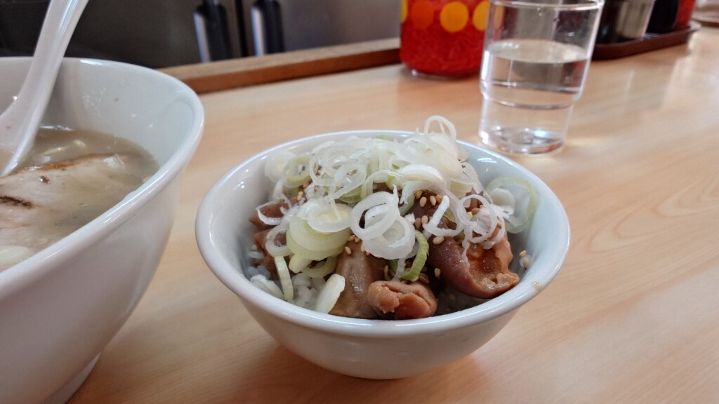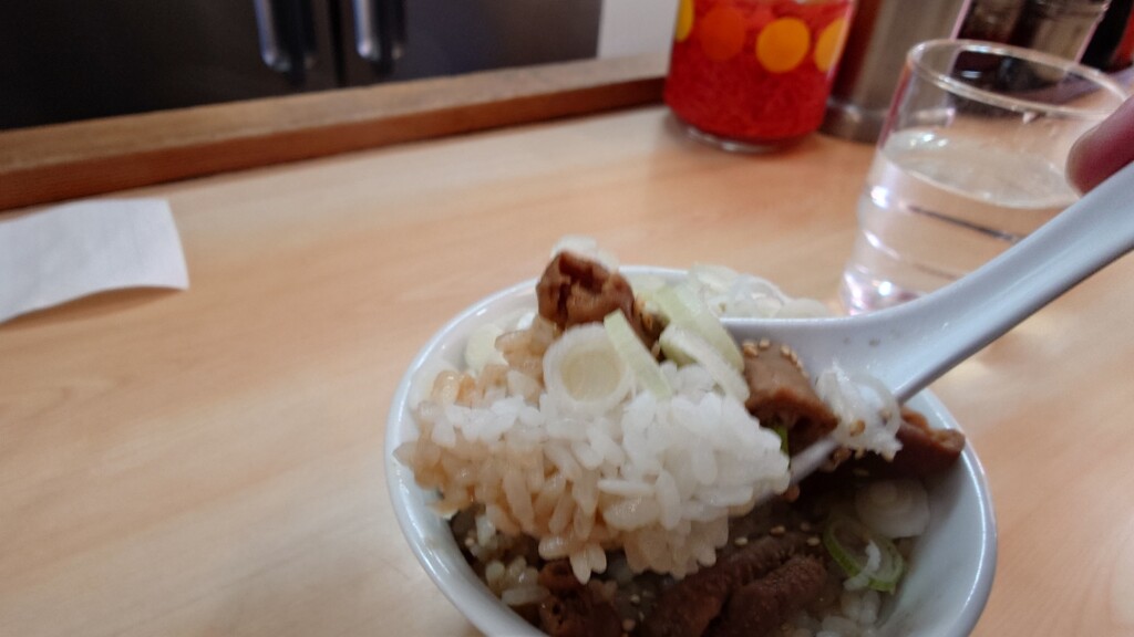 先にラーメンを頂いている故か、やや薄味に感じる部分も