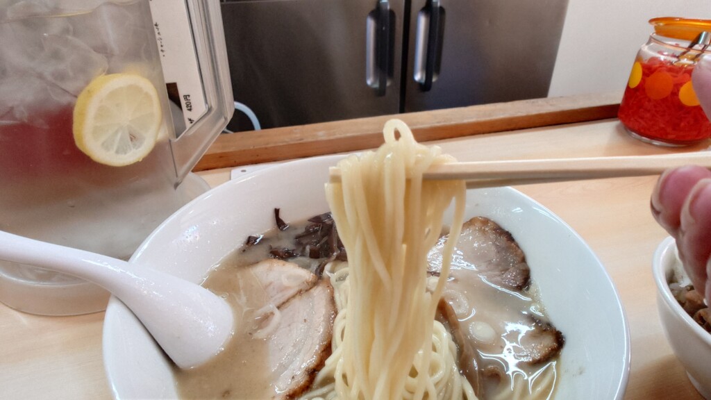 スープが濃厚な故か、程良い持ちあげ具合で麺とスープを楽しませる組み合わせに