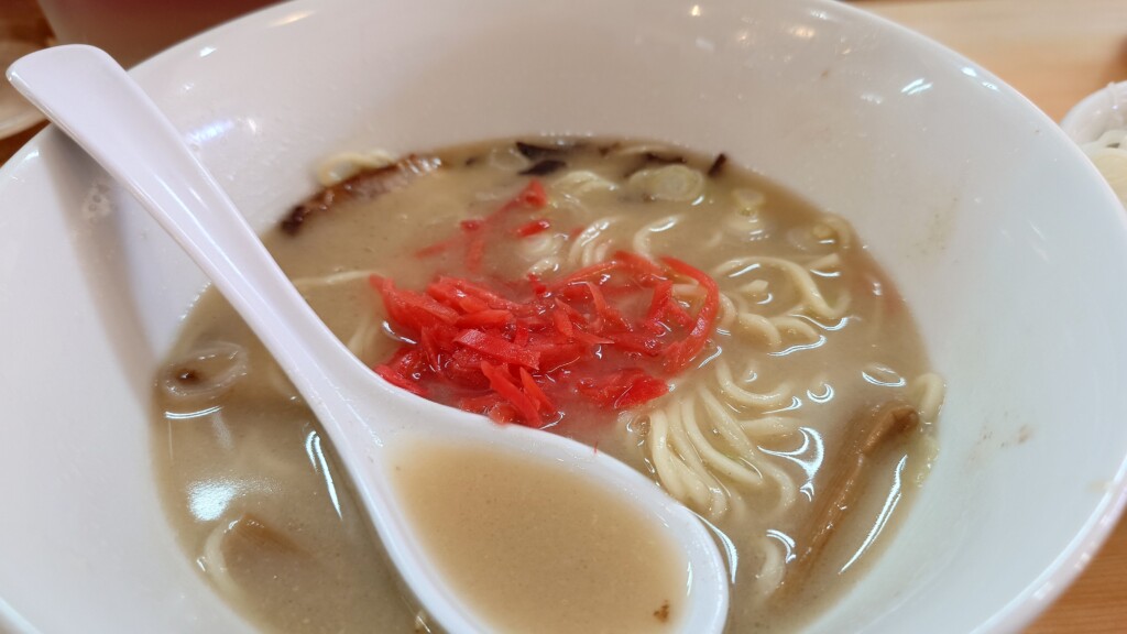 紅生姜を加えることで、濃厚な豚骨スープに甘酸っぱさをプラス