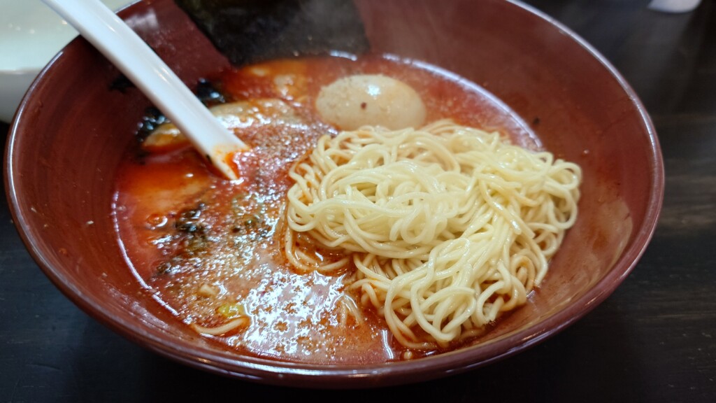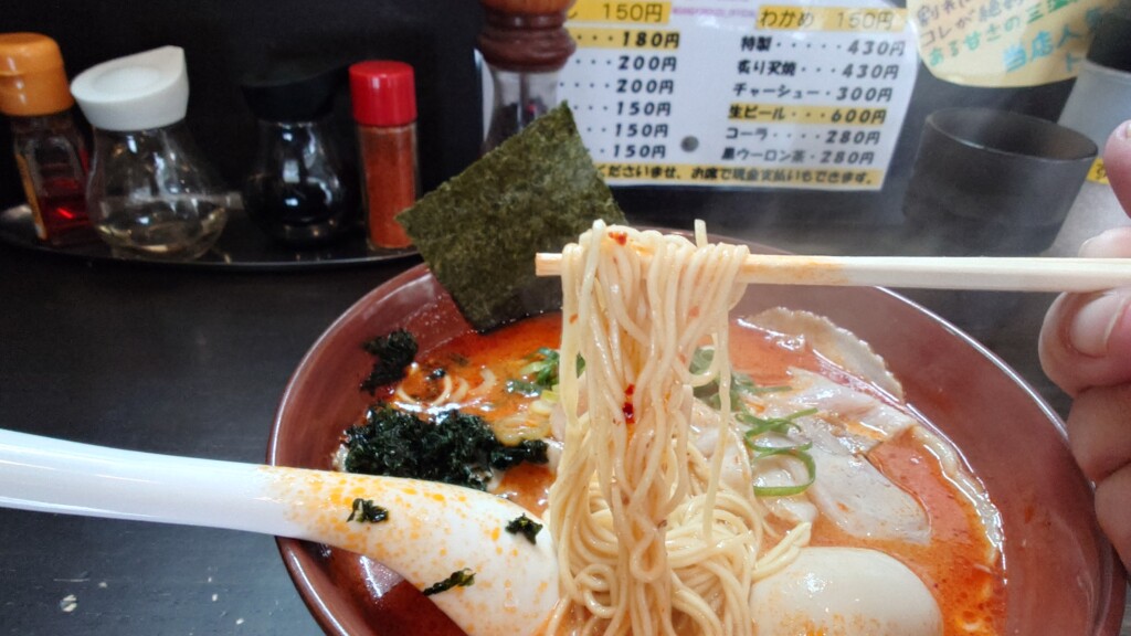 ライトな辛味を啜るパッツン細麺 無料替え玉で味変も楽しむ辛みそラーメン