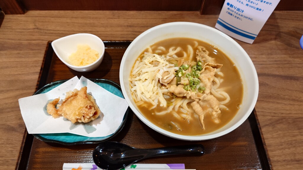 「うどん久麦」にて頂く、チーズカレーうどん&鶏天となります
