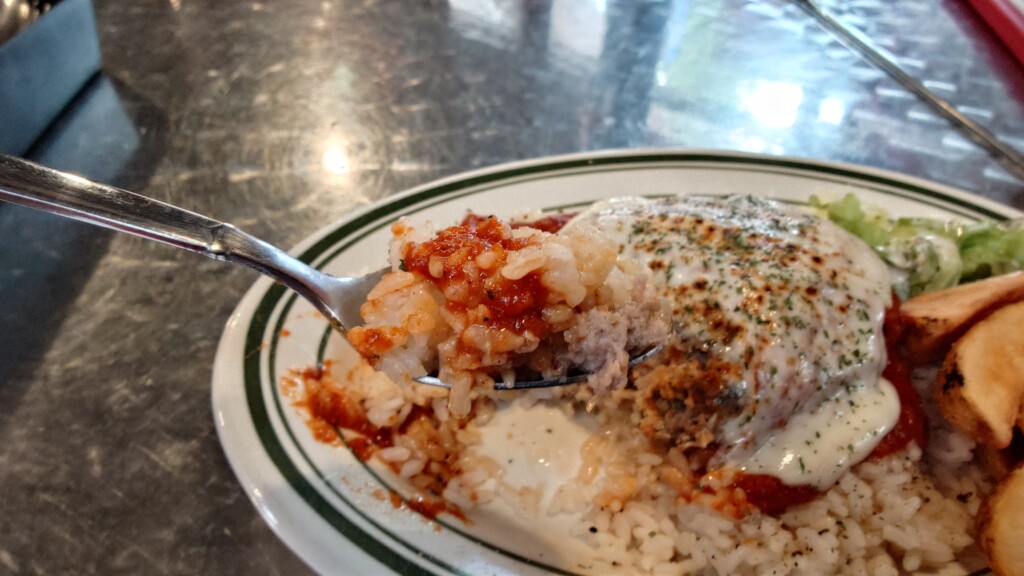 京成みどり台駅近く、ロイヤルフラッシュダイナーで頂く激ウマチーズサルサハンバーグ