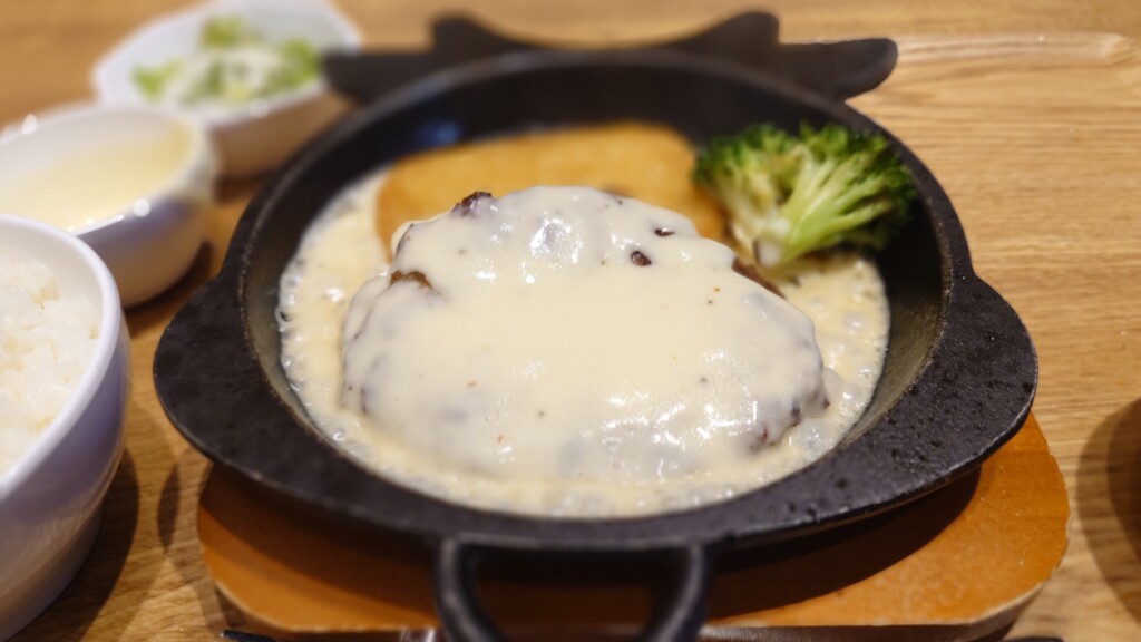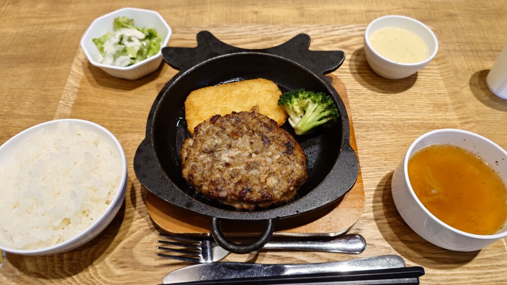 ハンバーグ自体は牛ベースとなり、肉厚ながら味わいは優し目