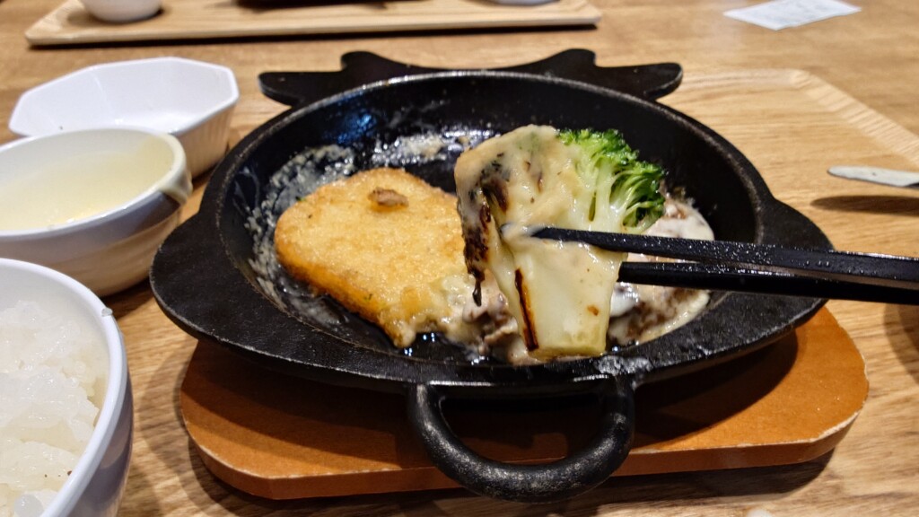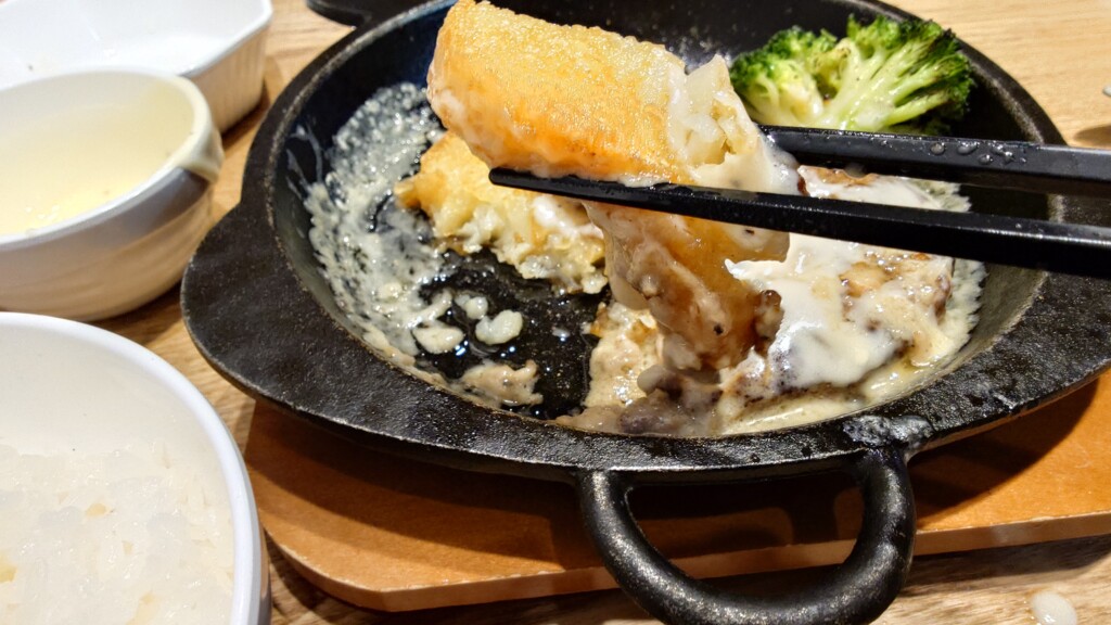 そこに輪を掛け、チーズソースにも熱が加わり、鉄板が冷めるどころか中の温度は一層高まるばかりで
